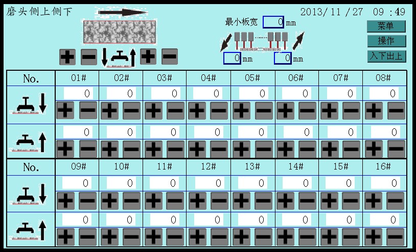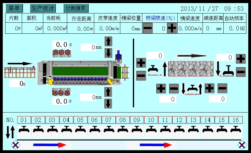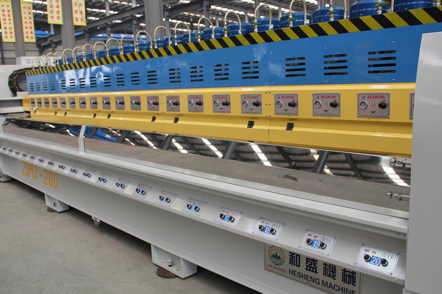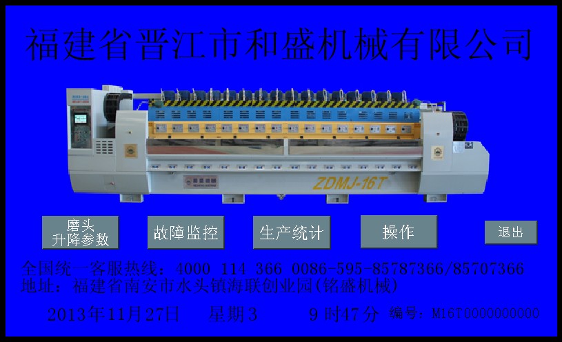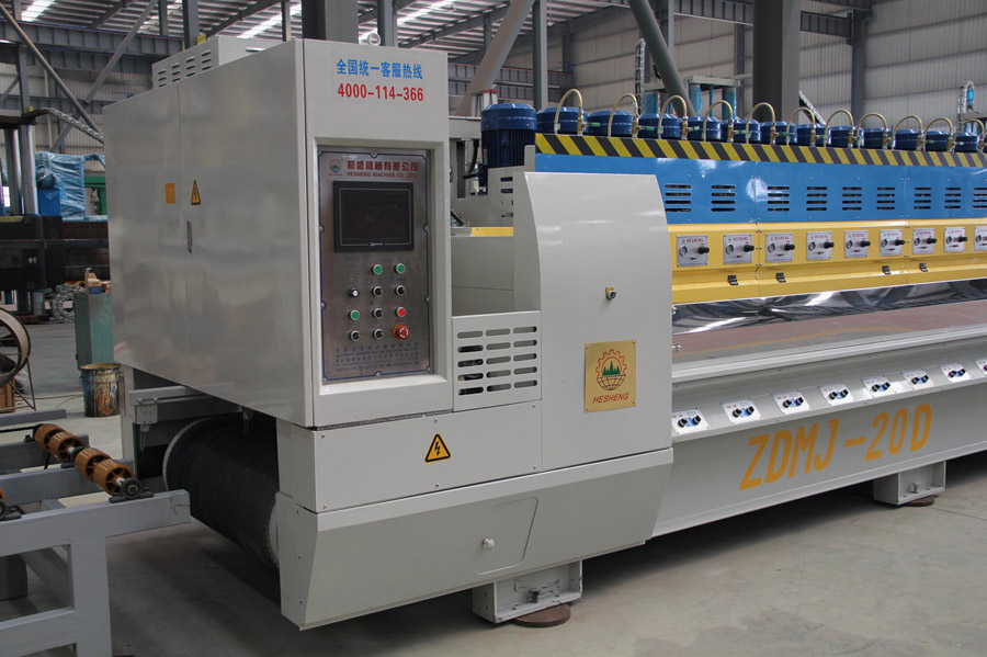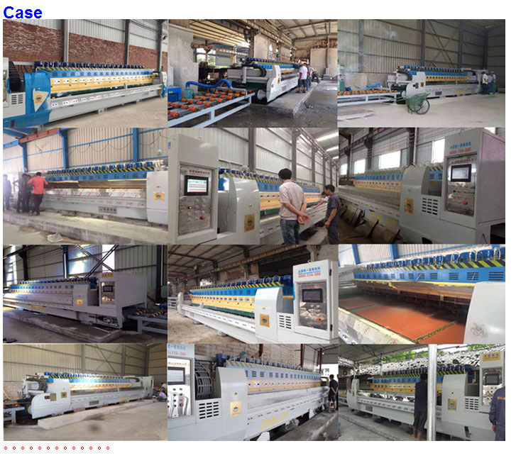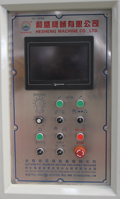 3:  The control system of this machine adopts PLC terminal control with LCD touch screen terminal as HMI for parameter setting and fault prompts during operation, etc. It is applicable to continuous grounding and polishing granite tile. Operating speeds of plate conveying and crossbeam of polishing disc are controlled by frequency converter; working pressure and the polishing width of tileplate are adjustable within the setting values. This machine can also automatically identify the shape of tileplate, so that each polishing disc (polishing head) could automatically lift and lower according to the identified shape of tileplate, and conduct tracking records for tileplate polishing at the same time. The overall machine is produced according the standard requirements with performance up to the leading domestic level.