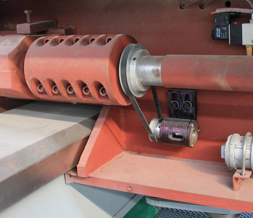 1:Adopt the adjustable lifting stroke polishing head,which can reduce the recoil resistance of polishing head and adjust the up and down limit polisition of polishing head suitable for different hardness slabs.The advantages of this improvement: 1.polishing the more thinner slab. 2.extend service life of the belt 3.increasing the polishing production. 4.redcing the abrasive consumption etc.